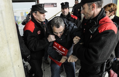 Ni con los papeles del Congreso español en la mano se libró el diputado de Amaiur Sabino Cuadra de la agresión policial en la huelga general del 26 de setiembre de 2012. Una imagen que dio la vuelta al mundo y llegó incluso a la portada del Financial Times y que, sin embargo, acostumbra a ser el pan de cada huelga general en Nafarroa.
