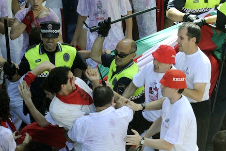 Desde que UPN decidió vetar la ikurrina, cada 6 de julio, con el inicio de los sanfermines, se libra en las calles de Iruñea la batalla para conseguir que en la plaza del Ayuntamiento esté presente también la bandera con la que se identifican buena parte de navarros. Esta batalla tiene momentos épicos como en 2013 con los arrantzales, pero acostumbra también a ser escenario de violentas intervenciones policiales. Unas actuaciones que se extienden a otros momentos de las fiestas como el intento de riau-riau en 2012, el paso de la procesión por la calle Curia o las surrealistas cargas policiales en el encierro de la Villavesa también en 2012.