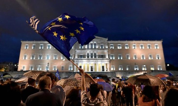 RECHAZAR EL PLAN DE LAS INSTITUCIONES ES DAR UN PORTAZO A EUROPA Y SINÓNIMO DE DEJAR LA UNIÓN. ESE ES EL PRINCIPAL ARGUMENTO DE LAS MILES DE PERSONAS QUE ABARROTARON SYNTAGMA RECLAMANDO EL «SÍ» PARA EL DOMINGO. RECONOCEN QUE LA SITUACIÓN ES MALA PERO TEMEN EL «APOCALIPSIS» Y SUEñAN CON EL FIN DE SYRIZA.