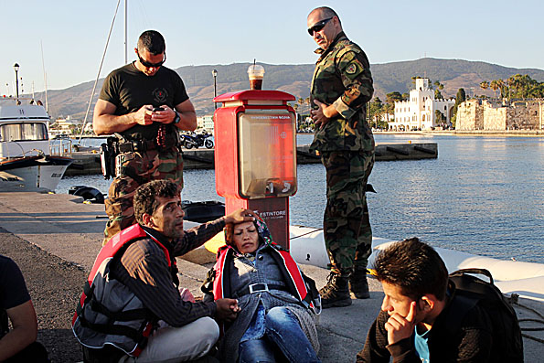 Los refugiados cruzan el mar Egeo desde Turquía en pequeñas embarcaciones e, incluso, en balsas hinchables. La mayor afluencia se produce en las islas griegas de Lesbos, Chios, Samos y las del Dodecaneso, especialmente Leros y Kos, pero es a esta última, situada a solo cuatro kilómetros de la costa turca, donde llegan en mayor número. Kos es una isla que vive del turismo, con unos complejos hoteleros que acogen fundamentalmente a alemanes, ingleses y holandeses. Prácticamente cada madrugada, y a las mismas playas donde de día disfrutan los turistas, arriban las pequeñas embarcaciones.