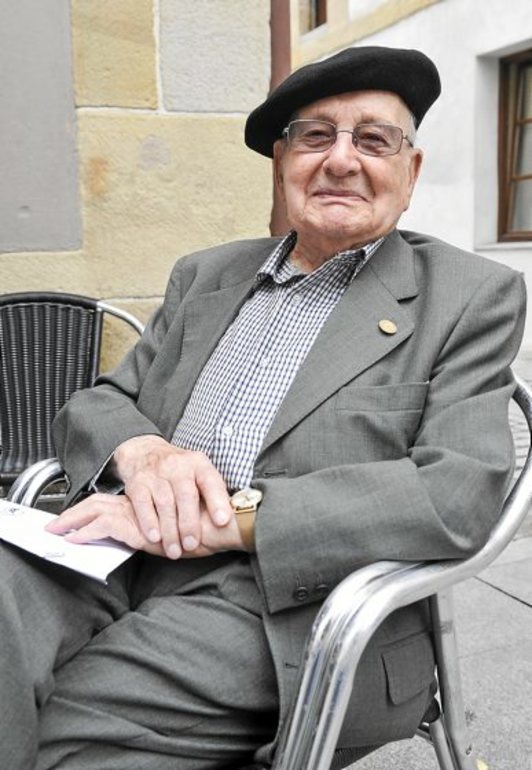 Desde Gernika hasta Bilbo, pasando por Durango y Arrigorriaga. Las tropas franquistas llegaron a la capital vizcaina en cuatro días y tomaron Artxanda. Aquel día volvió a esquivar a la muerte, pero no es eso lo que sigue dando vueltas en su cabeza, sino la botella de champán que se le rompió huyendo de los tiros. «Había comprado una botella de champán de ‘La Viuda de Clicquot’, el mejor champán francés, para cuando se terminara la guerra. Salí con mi mujer corriendo porque bajaban ya. Recuerdo que en el Ayuntamiento veía el puente de Perrochico, un puente que se abría y donde había que pagar cinco céntimos para cruzarlo. Pues bien –prosigue–, llevaba la botella en la mano y seguían ametrallando, así que me agaché, porque llegaban las balas desde Artxanda hasta abajo, ¡con tan mala suerte que pegué con la botella en la acera! Y ahí se quedó el champán que debíamos beber para celebrar el fin de la guerra».
