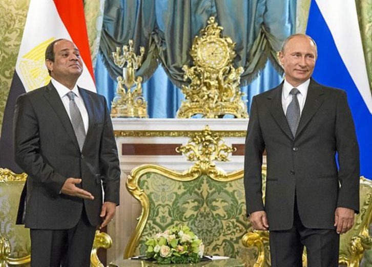 Consciente de que un alineamiento con Rusia a favor de la Siria de Al-Assad puede granjearle problemas con la Liga Árabe e incluso la ira de Arabia Saudí, principal apoyo económico del Egipto golpista, Al-Sissi puso sin embargo el acento en la colaboración económica bilateral y en «reforzar la cooperación militar en los ámbitos de armamento, instrucción e intercambio de experiencias». La de ayer es la cuarta reunión entre ambos líderes en los apenas catorce meses que lleva en el poder Al Sissi. En febrero pasado Putin viajó a El Cairo, visita que concluyó con la firma de una serie acuerdos y memorandos, entre ellos uno para la construcción de la primera central nuclear en Egipto.
