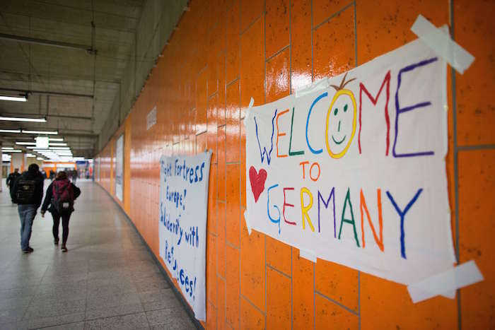 ‘Welcome to Germany’ en un cartel en Dortmund (Maja HITIJ | AFP)