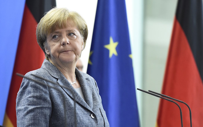 Criticada por las políticas económicas impuestas a la Unión Europea, Angela Merkel ha sido la primera mandataria en reaccionar ante la crisis de refugiados. En la imagen, rueda de prensa de este lunes en la que solicitó a los demás países más implicación. (Tobias SCHWARZ | AFP)