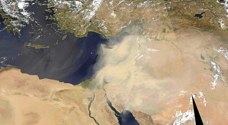 Epicentro de varios conflictos, el norte de África y Oriente Medio, se ve azotado estos días por una tormenta de arena que ha provocado al menos tres muertos en Líbano donde cerca de 2.000 personas han tenido que recibir atención médica por el polvo y las bacterias y virus que transporta el viento. Además, ha hecho retrasar, desviar y suspender vuelos y la actividad de puertos en Egipto. Afecta también a Jordania y azota Palestina, aún con Gaza en ruinas. La tormenta –visible en la imagen de satélite– se originó en Arabia Saudí, cruzó a Irak y tocó Siria el lunes.