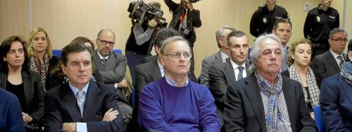 Había 18 acusados en el banquillo pero todos los ojos, también los de la Fiscalía y la Abogacía del Estado, parecían estar puestos en una de ellas: Cristina Federica Victoria Antonia de la Santísima Trinidad de Borbón y Grecia, infanta de España, hermana del rey Felipe VI. Los encargados de acusar al resto de imputados ejercen de defensa de la infanta. El fiscal, Pedro Horrach, abogó por la igualdad de todos los ciudadanos y denunció que se pretende discriminar a Cristina de Borbón porque nadie en su condición se ha sentado en el banquillo de los acusados [lo que no es cierto]. Por su parte, la abogada del Estado, Dolores Ripoll, alegó que el lema «Hacienda somos todos» tiene que circunscribirse «al ámbito para el que fue creado: el de la publicidad, exclusivamente como forma de concienciación al país» y no utilizarse, por tanto, para justificar que se admita su imputación con la única petición de la acusación popular.