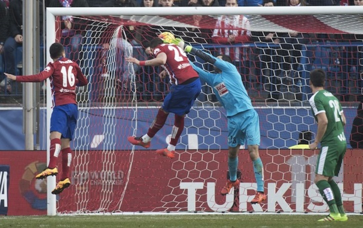 La remontada colchonera ha llegado desde la esquina. En el minuto 56, el uruguayo Giménez se ha adelantado a Riesgo para cabecear en el área pequeña un corner lanzado por Koke.