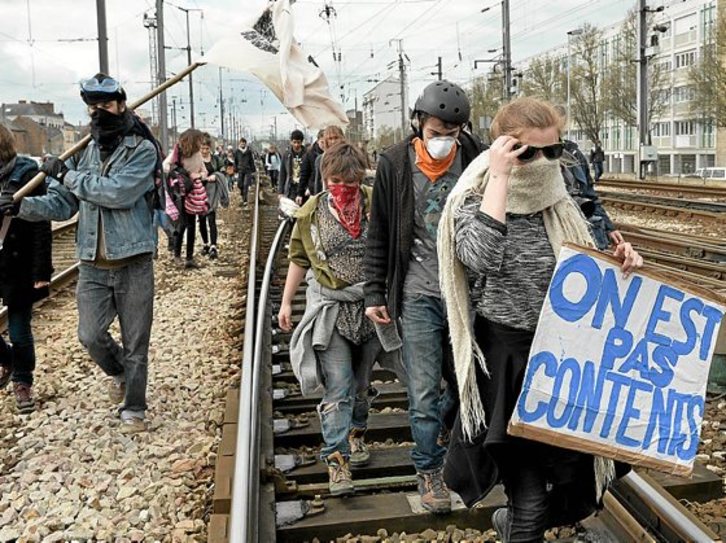 Las calles de ciudades y localidades del Estado francés siguen siendo escenario de protestas y movilizaciones contra la reforma laboral que el Gobierno de París trata de llevar a cabo. Tras la jornada de lucha del pasado 31 de marzo convocada por los principales sindicatos, ayer jóvenes y estudiantes tomaron la calle de nuevo, al considerar que la ley beneficia a los empresarios en detrimento de los derechos de los trabajadores.