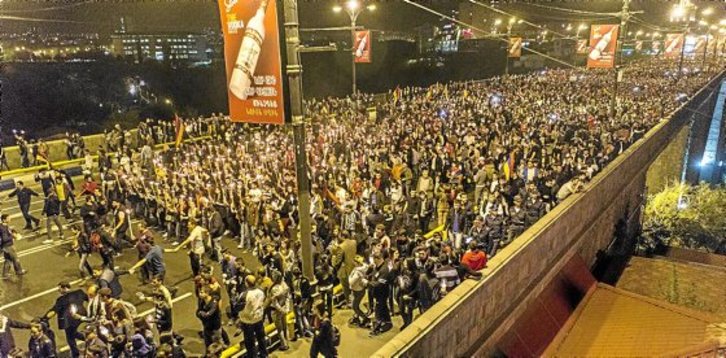 Por primera vez, en protesta por el reinicio de las hostilidades en Artsaj, la ya tradicional quema de la bandera turca en la plaza de la Ópera se vio acompañada por la quema de la bandera de Azerbaiyán, país al que las fuentes armenias acusan de reanudar el conflicto a gran escala, a pesar de que desde la firma del alto el fuego de mayo de 1994 cada año se han ido produciendo tiroteos con víctimas mortales en ambos bandos. Otra de las iniciativas realizadas durante la marcha en apoyo a Artsaj desplegar banderas de 30 metros de dicha república.