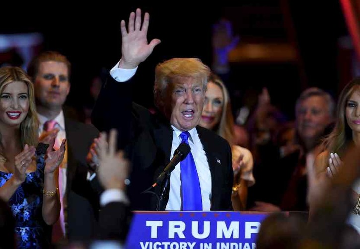 El magnate Donald Trump se quedó ayer sin adversarios en la carrera por la designación presidencial del Partido Republicano, tras vencer en las primarias de Indiana (53%), lo que acabó con los intentos de bloquear su marcha a la nominación anticipada para forzar una negociación en la convención de la formación, prevista para julio, y motivó la salida de escena del senador evangelista ultraconservador Ted Cruz y del gobernador de Ohio, John Kasich. Trump ha logrado capitalizar la indignación del electorado y ha eliminado en diez meses y medio a quince aspirantes republicanos –gobernadores, senadores, empresarios– más cualificados sin tener que suavizar su tono políticamente incorrecto.