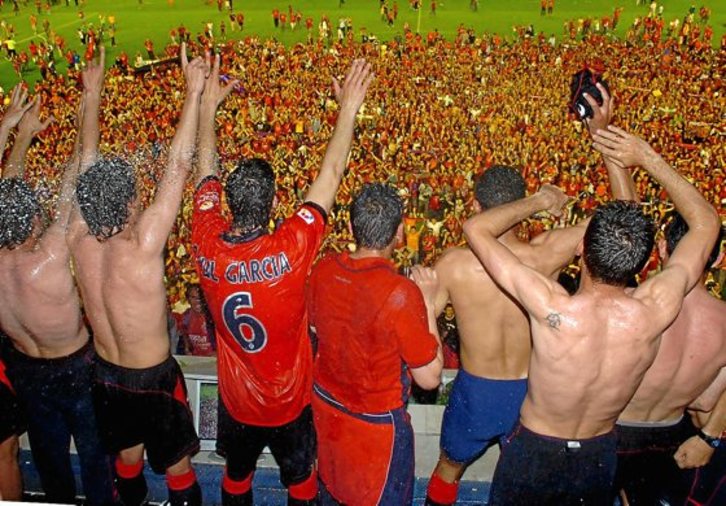 Invasión de campo mientras sonaba el himno de la Champions, celebración por todo lo alto en El Sadar que dejó a los jugadores en paños menores, baño de multitudes en la Plaza del Castillo y prolongación del festejo hasta altas horas de la madrugada, como no podia ser de otra manera. Con solo seis temporadas en su regreso al más alto nivel futbolístico coincidiendo con la entrada del nuevo siglo, Osasuna alcanzaba algo inimaginable para el presupuesto económico que se decía manejaba. Una situación que, con el paso del tiempo, se demostraría irreal y que le fue lastrando hasta el punto de casi acabar en la desaparición del club. Paradojas de un deporte –sería más correcto hablar de negocio, de no ser por la presencia de los incondicionales aficionados– en el que, por desgracia, suelen correr paralelos los éxitos deportivos y los desmanes económicos.