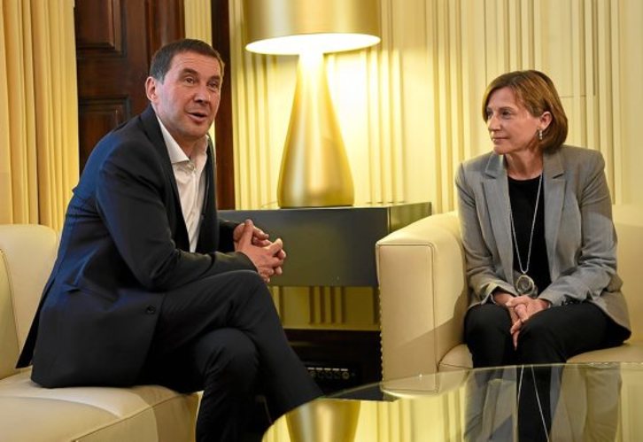 Solo los acontecimientos clave del proceso independentista catalán han generado mayor expectación en el Parlament que la visita que el secretario general de Sortu, Arnaldo Otegi, realizó ayer. La concentración de medios de comunicación que se amontonó sobre la escalinata de la Cámara catalana recordó a citas señaladas como la Declaración de Soberanía del 2013 o los intensos plenos previos a la consulta del 9 de noviembre de 2014. Para bien o para mal, la presencia de Otegi monopolizó ayer la actualidad catalana, por encima de la prohibición de la estelada en la final de la Copa o de la reunión entre De Guindos y Junqueras.