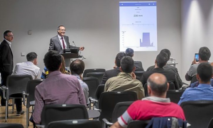 Para que los asistentes entendieran lo que quería decir, conectó un sensor a un smart bridge (un dispositivo que se encarga de trasladar los datos a un receptor) y este a su teléfono móvil. Desde su teléfono era capaz de gestionar la sensibilidad del sensor y también ver la distancia a la que se encontraba este de la pared. Este no fue más que un pequeño ejemplo de la red que puede formarse en una empresa. No obstante, opinó que todavía no puede decirse si la Industria 4.0 tendrá éxito o no. «Eso se sabrá dentro de veinte años», resaltó.