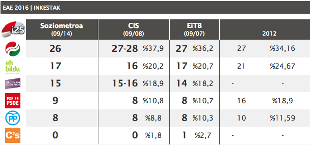 Estos resultados son similares a los de las encuestas del CIS y de EiTB, que daban al PNV como ganador, aunque con 27 e incluso 28 escaños.