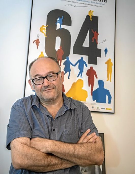 Con la alfombra roja desplegada, la 64 edición de Zinemaldia alza el telón para ofertar una completa programación cinematográfica. Mientras observa cómo corre el segundero de su reloj, el director de esta cita imprescindible, José Luis Rebordinos, revela a GARA los entresijos de una edición diseñada para sorprender. Como si de un ritual se tratara, la primera cuestión hace referencia a la calma que transmite el entrevistado. «La verdad es que soy una persona muy tranquila –señala Rebordinos–. A estas alturas ya está todo atado y tan solo queda tirar millas y dosificar el esfuerzo que requiere afrontar estos días tan cargados de emociones, estímulos y en los que recibimos multitud de visitas. Además, cuento con la seguridad y respaldo de un excelente equipo que ha elaborado una programación repleta de contenidos muy interesantes y que, sin duda, va a sorprender. Estoy convencido de que este va a ser un buen año. Un dato que lo demuestra es que a mediados de agosto ya teníamos cerradas las secciones más importantes de Zinemaldia. El año pasado fue más complicado porque cerramos muchas películas a última hora».