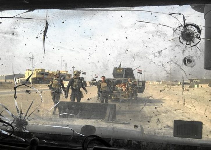 «Nos cambiamos del hotel en el que estábamos a uno mucho más discreto por razones de seguridad», explica Jewan Abdi, operador de cámara de la BBC, desde un lugar sin especificar. Abdi, quien se inició el periodismo con GARA en 2012 desde su Rojava natal, está hoy en plantilla de la radiotelevisión pública británica. Cubre para ellos la ofensiva desde el día D. Junto a su compañero, Ayman Oghana, este kurdo de 32 años ha sido el primer informador en entrar en Mosul, algo únicamente factible gracias a un exclusivo «empotramiento» con el CTF (siglas en inglés para Fuerza Contraterrorista), la única unidad de élite del Ejército iraquí.