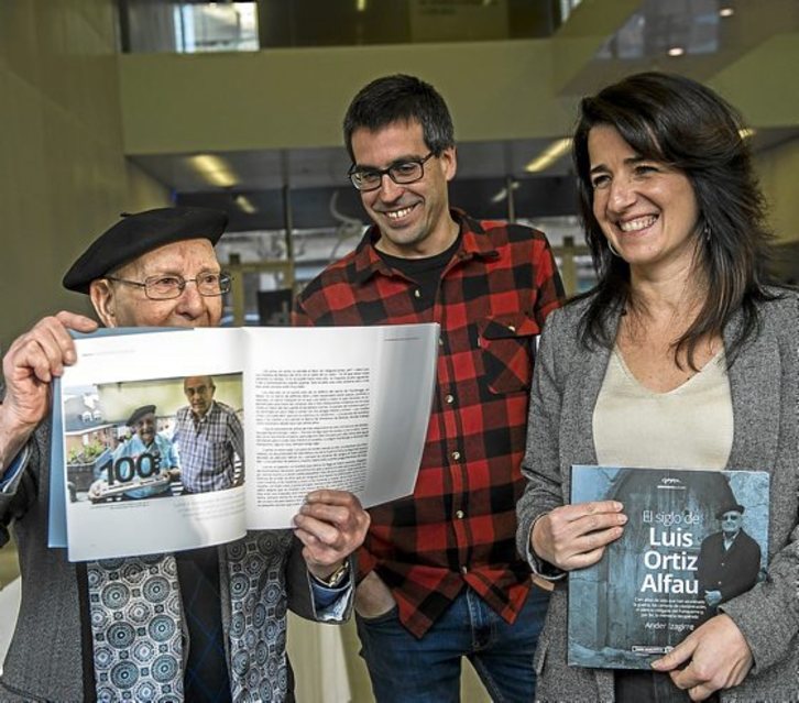 ‘‘El siglo de Luis Ortiz Alfau’’ es el título del libro del periodista Ander Izagirre, editado por el Instituto Gogora, que relata lo vivido por este miliciano en la guerra de 1936, el franquismo y su lucha por la recuperación de la memoria histórica. En su presentación, ayer en Bilbo, su protagonista reconoció que su labor para que se haga justicia con los represaliados del fascismo «llena mi vida».