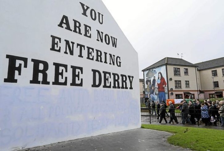 Cientos de personas se unieron al recorrido del cortejo fúnebre que condujo a hombros el ataúd de Martin McGuinness, cubierto por la bandera irlandesa, hasta su casa, atravesando el histórico Bogside. Entre los presentes, el líder de Sinn Féin Gerry Adams, y Michelle O'Neill, la nueva líder republicana en el norte de Irlanda. El funeral tendrá lugar mañana jueves en la iglesia de Santa Columba.