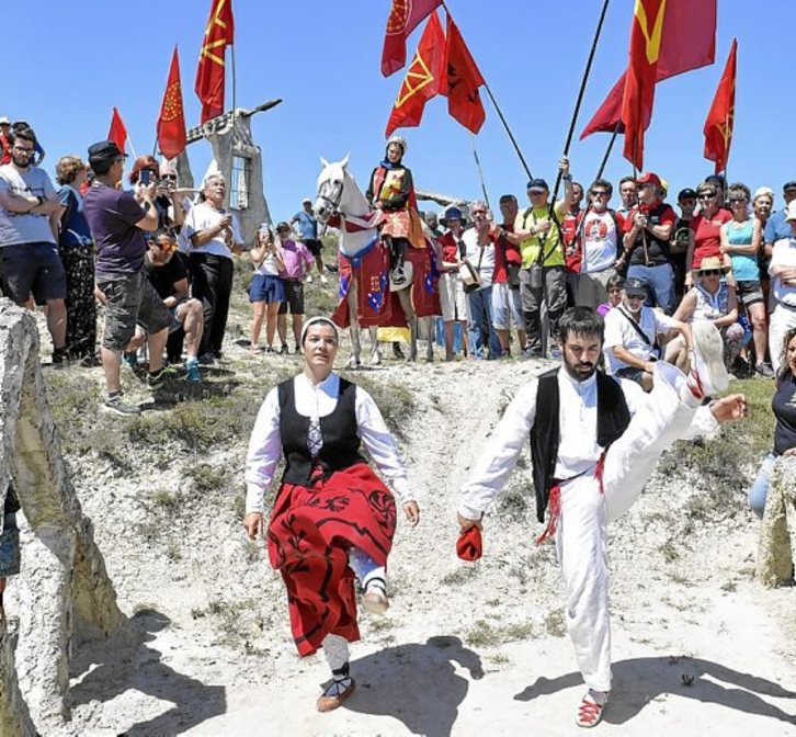 La marcha partió a las 11.00 e incluyó la recreación de la presencia de la propia reina y de los caballeros medievales. Xabier Irujo Amezaga, historiador, investigador y subdirector de Estudios Vascos de la Universidad de Nevada, leyó el pregón frente al monumento situado en Getze, tras el habitual aurresku ofrecido por dantzaris de Ortzadar.