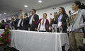 Algunos delegados gritaban consignas y portaban banderas, unas con la rosa roja, símbolo del nuevo partido, y otras con eslóganes de la antigua guerrilla. Entre ellos, un grupo de delegados comenzó a gritar «por la vida, por la paz, viva la FARC».