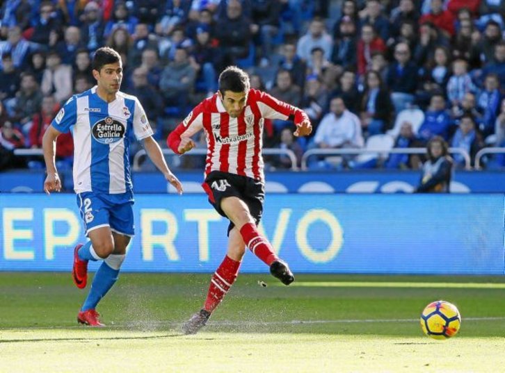El tanto dejó noqueado a un Depor con excesivas carencias especialmente sicológicas. El rumano Andone saltó del banquillo para sumar arriba, pero el Athletic, apuntalado en un portentoso Rico capaz si le dejan de sacar un córner y rematarlo él mismo, se creció con el gol, al revés que en la primera mitad. El propio jugador de Arrigorriaga firmó una zigzagueante diagonal que culminó con disparo desviado y al poco Iturraspe mandó el primer balón de la mañana al palo. Sensaciones positivas que en un nuevo córner se evaporaron con otra imperdonable flojera defensiva, dos golpeos rivales en el área y gol. Cabeceo al primer palo, Iturraspe que pierde la marca del suizo Schär y este, solo, empata.