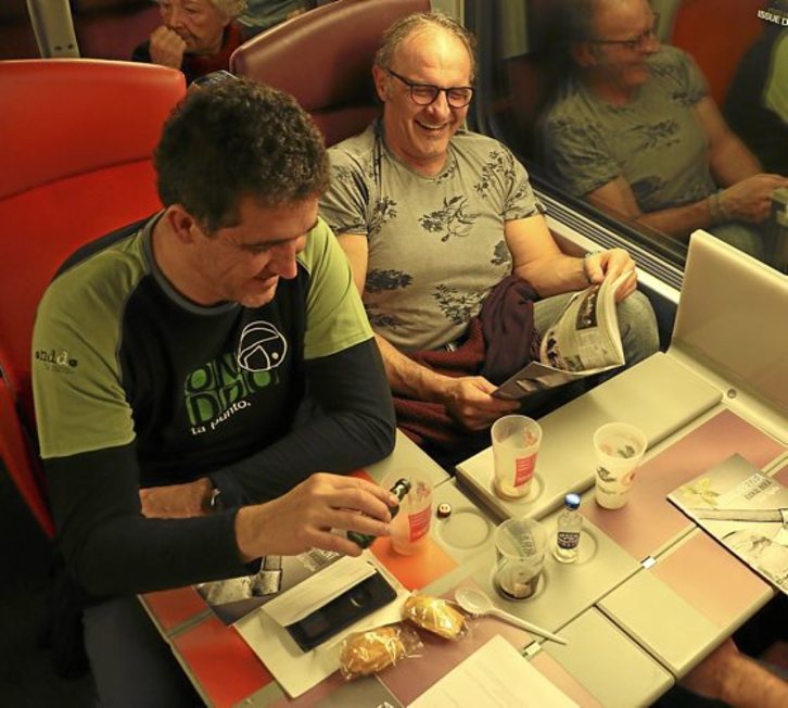 Euskal Herritik trena urruntzen zen neurrian, pixkanaka giroa pausatuz zihoan eta antolakuntzako kideak jarraitu beharreko argibide eta egitarauari buruzko informazioa banatzen hasi ziren. Haien atzetik, bigarren lerroa; ohiko treneko langileek, ohiko uniformearekin, ohiko arropa gris eta txapel bereizgarriekin, ohi moduan, trenaren kulunkei aurre eginez bagoiak zeharkatzen zituzten, baina oraingoan ez zuten bezeroei bidaia txartelik eskatu beharrik.