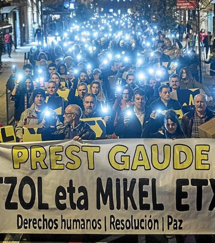 «Reclamamos que en política penitenciaria se den pasos desde una clave de confrontación hacia una fase de resolución, terminando con la aplicación de las leyes de excepción, donde todos los derechos humanos sean respetados», señalaron al término de la manifestación celebrada en Errenteria, una marcha en la que se reclamó la puesta en libertad de Aitzol Gogorza y Mikel Arrieta, dos vecinos que continúan en prisión pese a padecer graves enfermedades.
