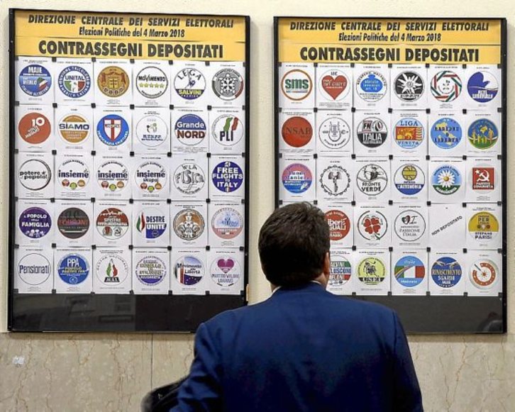 Los sondeos realizados en los últimos meses vienen repitiendo una tendencia: el Movimiento 5 Estrellas se haría con la victoria electoral, pero lejos del 40% de los votos necesarios para gobernar en solitario. Los dirigidos por el excómico Beppe Grillo siguen al alza alimentándose de la desafección general hacia la política tradicional, la parálisis de la economía italiana y las consecuencias de un desempleo juvenil que se sitúa en torno a un 35%. A las elecciones se presentan con Luigi Di Maio de candidato, un joven de 31 años sin apenas experiencia en la política institucional, y con la abandonada promesa de convocar un referéndum sobre la salida del país del euro, muestra de la indefinición de los populistas cuando se trata de asuntos de relieve.
