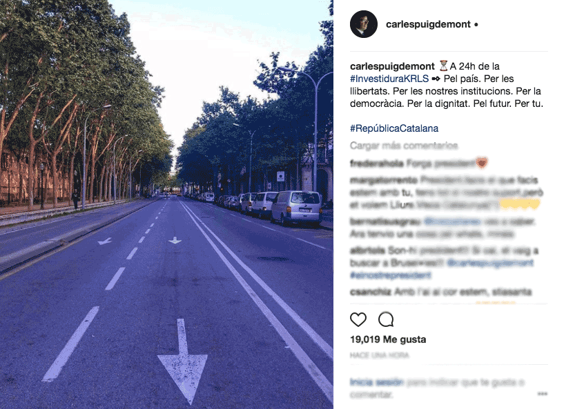 Por su parte, también Puigdemont alimenta a esta hora su posible presencia en el Parlament. Este mediodía ha difundido en Instagram una foto del Paseo Picasso, junto a la Cámara catalana, acompañado con el siguiente mensaje: «A 24 hora de la #investiduraKRLS Por el país. Por las libertades. Por nuestras instituciones. Por la democracia. Por la dignidad. Por el futuro. Por tí».