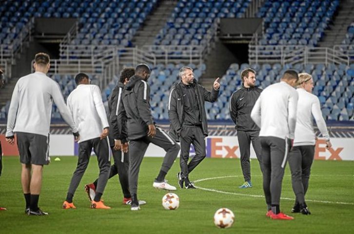 La Real busca esta tarde una victoria para encarrilar la primera eliminatoria de una fase final de una competición europea que juega desde su eliminación contra el Olympique de Lyon en 2004 en la Liga de Campeones.
