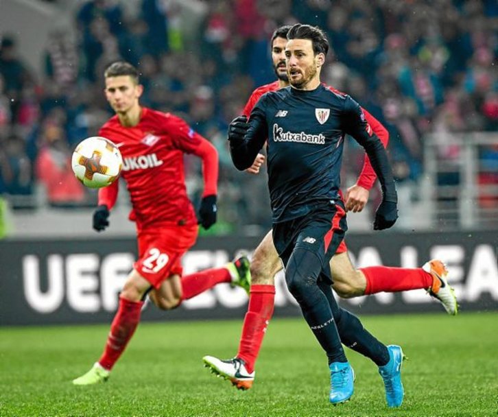 Para los primeros socialistas rusos el fútbol era una perniciosa consecuencia de la opresión del proletariado. Un vicio, vamos. Para el Athletic, en cambio ayer, su visita a Moscú fue una liberación, un desahogo, ese esperado reencuentro con el dulce sabor de la victoria, con una competición, además, con la que en los últimos años ha pactado un idilio que no solo le da alegrías, y a veces sonrojantes tristezas, sino que le ha otorgado ese poso necesario y obligado para aquellos que quieren enfrentar este tipo de eliminatorias, donde los detalles cuentan y mucho, donde hay que tener la madurez suficiente para saber jugar estos cara o cruz, donde hay que aliarse con la diosa fortuna para ir sorteando fases. En aquel inolvidable tránsito a Bucarest, los cruces con rivales de quilates estuvieron jalonados de dosis de lo uno y lo otro. Bajo el frío moscovita, el Athletic se acogió al calor de Aritz Aduriz, quien a sus 37 ‘castañas’ recién sopladas firmó un doblete que le aúpa al olimpo de goleadores continentales en esta competición. El Athletic echó mano de la efectividad cara a portería, aunque todavía se esté lamentando en el avión de vuelta a Bilbo de ese cuarto gol para finiquitar la eliminatoria que tuvo en su bota Sabin Merino ya en el descuento. De efectividad en los momentos claves, de equipo compacto a partir de cobrar ventaja en el marcador, y de la sobriedad y contundencia que destilaron la pareja de centrales, un titánico Yeray y un no menos competitivo Etxeita, que sostuvieron al equipo cuando el rival apretó en esos primeros veinte minutos de encuentro.