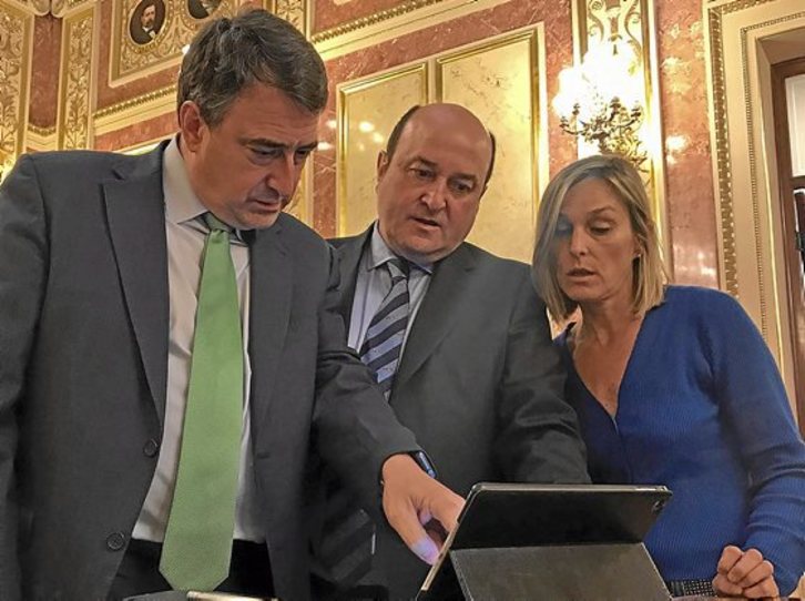 Con el pleno del Congreso ya empezado, el portavoz jeltzale Aitor Esteban anunció que rechazaría las enmiendas a la totalidad, dando vida a la continuidad de la tramitación de PGE. Adujo que el martes el presidente del EBB, Andoni Ortuzar, mantuvo una reunión con el presidente del Gobierno, Mariano Rajoy, «para hablar de la situación política en general», le expuso la «oposición frontal» del PNV al mantenimiento del 155 en Catalunya, y le dijo que considera «justas» las reivindicaciones de los pensionistas.