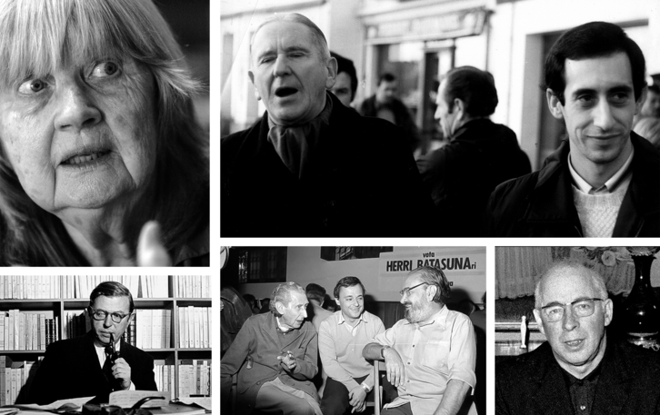 El Proceso de Burgos (1970) supone un hito en la historia y, además de las movilizaciones populares, no faltan doctos nombres que acuden a la llamada de ayuda a los vascos, como los trescientos intelectuales y artistas que se encierran en la abadía de Montserrat (Catalunya) para denunciar el juicio. No obstante, el mayor exponente de empatía hacia la causa de los procesados llega el año siguiente con el filósofo francés Jean Paul Sartre, quien a petición de la abogada y ensayista franco-tunecina Gisèle Halimi prologa su libro "Procès de Burgos". El pensador galo ofrece una sucinta historia del conflicto entre Euskal Herria como «pueblo sobreexplotado» y sus «estados opresores», opina que la cultura «vasca debe ser hoy en primer lugar una contracultura», y concluye que «el pueblo vasco solo puede radicalizarse: ahora sabe que la independencia solo se obtendrá por medio de la lucha armada».