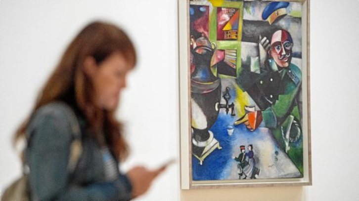 La exposición, titulada “Chagall. Los años decisivos, 1911-1919”, coproducida con el Kunstmuseum Basel de Basilea, reúne 86 obras de este particular pintor que fusionó en su obra tanto los dos universos culturales, completamente diferentes y en algunos aspectos antagónicos, que le influyeron en sus inicios, el de su origen judío-jasídico y el occidental, absorbido en sus años de formación en París, como los movimientos artísticos de las vanguardias europeas que conoció en París.