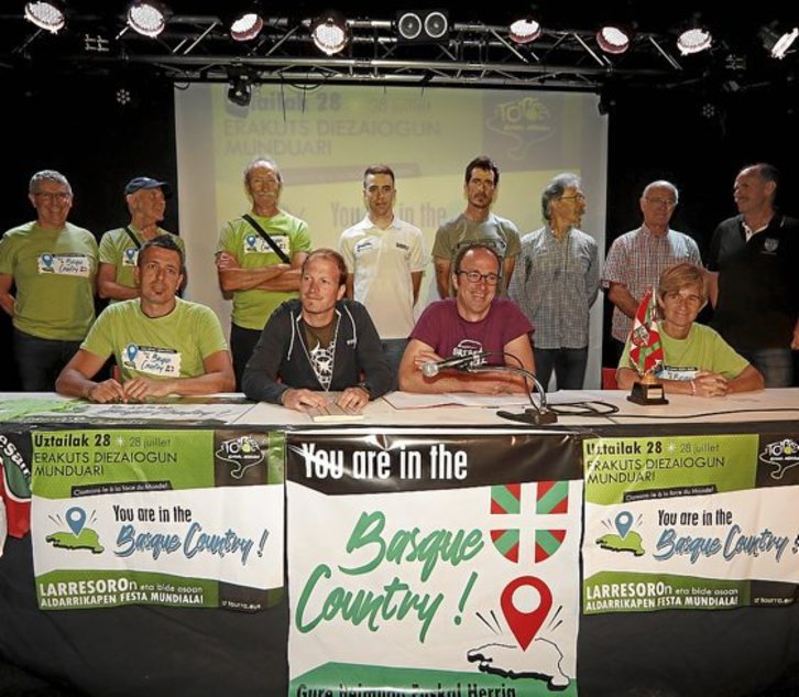Se han marcado el objetivo con la etapa del 28 de julio en Iparralde «de demostrar al mundo que están en Euskal Herria en una crono retransmitida a 170 Estados diferentes por 78 televisiones. Es un escaparate para este pueblo sin Estado. No podemos desaprovechar la oportunidad de reivindicar de forma clara lo que queremos ser. Queremos mostrar al mundo que están en Euskal Herria, un pueblo que quiere ser libre, que necesita la paz, la soberanía, la oficialidad del euskera, la universidad... Un pueblo que no necesita presos, que da la bienvenida a los refugiados y que quiere vivir en euskera».
