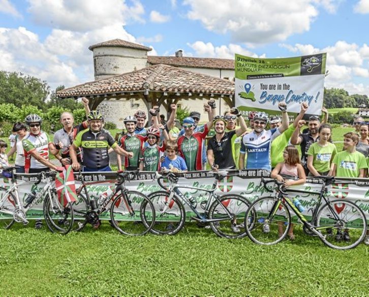 Con ese objetivo empezaron ayer los actos organizados por un grupo de personas de Lapurdi para estos días con una marcha en la que participaron decenas de cicloturistas que disfrutaron de una jornada perfecta en lo climatológico, con sol y al mismo tiempo un aire agradable ideal para andar en bicicleta. Formaron un pequeño pelotón que pudo disfrutar del maravilloso y duro recorrido que la organización del Tour ha preparado para el próximo sábado.