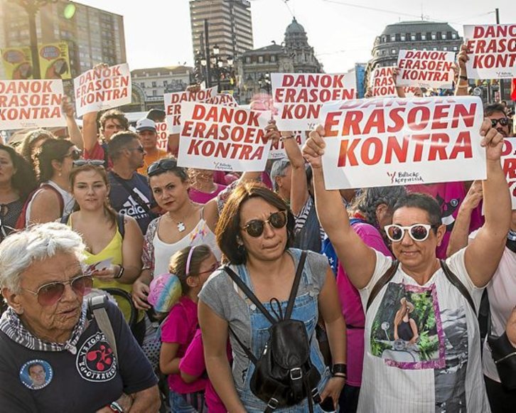 Bilboko Konpartsak remarca que las agresiones sexistas son «una vulneración de los derechos humanos de las mujeres y un ataque a nuestro derecho a disfrutar del espacio público, en general, y de las fiestas en particular». Y añade que no van a dejar pasar ni una, ni tampoco «mirar hacia otro lado».