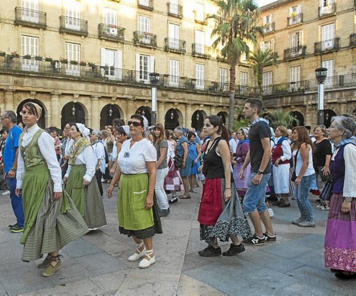 Fue la de ayer una romería especial en la plaza Nueva, por el llamamiento a acudir con trajes típicos tradicionales para participar en el Baile de la Era, una de las danzas más arraigadas en Euskal Herria.Monika DEL VALLE | FOKU