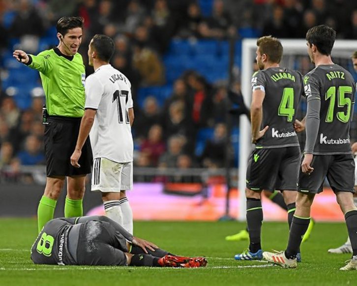 El técnico oriotarra afrontará el encuentro con las bajas de Robin Le Normand tras recibir un golpe en Sevilla en la meseta tibial externa derecha y de David Zurutuza, con una rotura fibrilar de grado 1 en el sóleo de la pierna izquierda. Sus plazas con respecto a la convocatoria del Villamarín las ocuparon los jugadores del filial Aihen Muñoz y Roberto López y se espera que Igor Zubeldia sea el elegido para jugar junto a Illarramendi en el puesto del debarra y que Diego Llorente y Héctor Moreno sigan en el centro de la zaga.