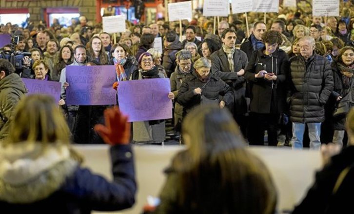 Las calles y plazas de Iruñea, Gasteiz, Bilbo y Donostia acogieron ayer movilizaciones convocadas por la Marcha Mundial de las Mujeres de Euskal Herria para manifestar su rechazo a la ola reaccionaria, visibilizada en las últimas semanas en Andalucía con la irrupción de Vox y el pacto a tres entre la formación de ultraderecha, Ciudadanos y PP. Precisamente la solidaridad con el pueblo andaluz y, especialmente, con las mujeres que se han levantado frente al discurso machista de la formación de Santiago Abascal fue el hilo conductor de las concentraciones que llevaron como lema «Faxismoaren aurrean elkartasun feminista. Solidaridad con el pueblo andaluz».
