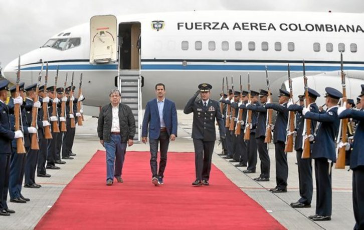 Colombia se ha convertido en el teatro de operaciones de la oposición venezolana. El autoproclamado presidente Juan Guaidó, que el sábado apareció en Cúcuta junto a los presidentes de Chile, Paraguay y Colombia y el secretario de la OEA, Luis Almagro, está hoy en Bogotá, donde se reunirá con el vicepresidente de Estados Unidos, Mike Pence, y representantes del llamado Grupo de Lima.