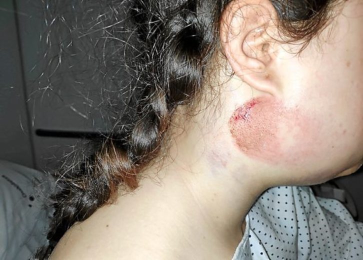 Al llegar al hospital, viendo la gravedad de sus heridas, y tras una primera exploración, le proporcionaron medicación para rebajar la inflamación y los dolores, paso previo a que se le practique cualquier operación con cirugía abierta. La herida, que está consciente y puede hablar, espera que hoy pueda ser intervenida.