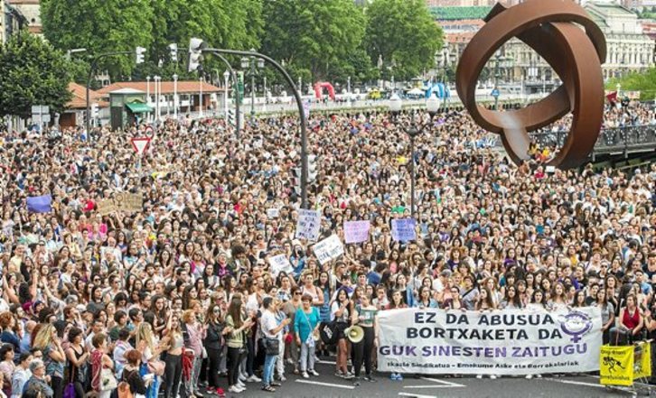Se da la circunstancia de que una reciente sentencia del Supremo califica como «agresión sexual» y no como «abuso» el delito de un hombre que violó a una mujer en el baño de un bar de Altsasu, con lo que elevó de cuatro a seis años de cárcel la pena que le había impuesto el TSJN.GARA