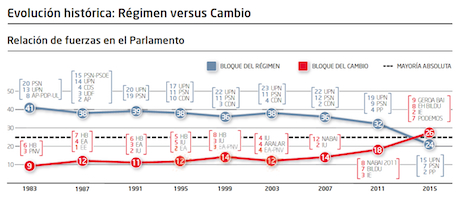 La correlación de fuerzas favorable a UPN y PSN y, con ella, el «apartheid» político de fuerzas abertzales y/o de izquierdas, duró décadas. Tuvieron que suceder dos hechos excepcionales al mismo tiempo –el cambio de estrategia de la izquierda abertzale y la peor crisis económica en décadas– para generar las condiciones que posibilitarían cambios en la correlación de fuerzas.
