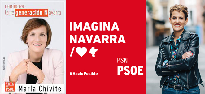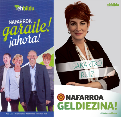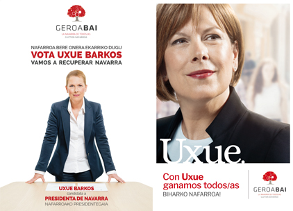 Probablemente, la mejor campaña de hace cuatro años fue la de Uxue Barkos. Mientras los demás se enzarzaban en debates políticos, los creativos de Geroa Bai se centraron en crear una imagen presidenciable de su líder. Se apoyaron en un cartel de la serie “House of cards”, que narra la vida del presidente de EEUU. Tras cuatro años de gobierno, ya no necesitan crear imagen, juegan a mantener y enfocan unos carteles que reflejan sobriedad y seriedad.