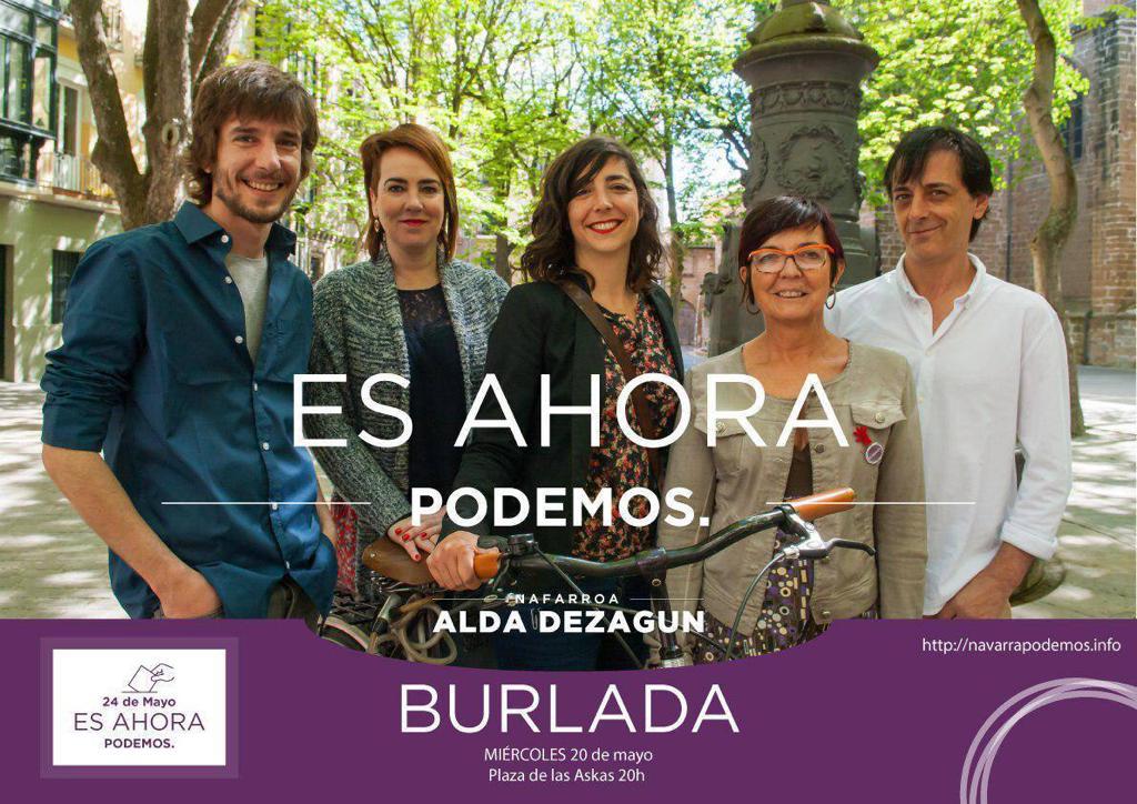 Impactante también la cartelería de Podemos. Más que nada, porque aquello acabó como el rosario de la aurora a nivel personal. Ahí está, primero por la izquierda, Mikel Buil, el actual candidato. De los cinco, solo siguen sigue en la formación Buil y Ainhoa Aznárez. Laura Pérez y Carlos Couso abjuraron del partido morado. Y Tere Sáez, bueno, siempre ha sido del partido de Tere Sáez.