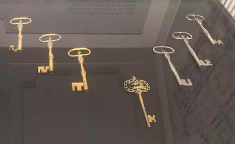 Las llaves son copia de otras más antiguas, ya que desde 1560 existía la costumbre de entregarlas simbólicamente en una bandeja de plata a los monarcas que visitaban la ciudad. Tres son doradas, de latón, y encarnan la riqueza de la ciudad, y otras tres bruñidas, de hierro templado, para recoger su fortaleza.