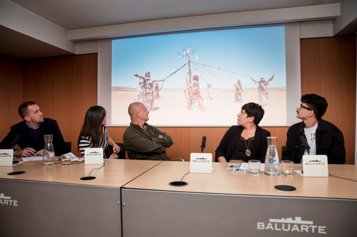 Aldaz ha estado acompañada en la presentación de la muestra por el director gerente navarro de Infraestructuras de Cultura, Deporte y Ocio (NICDO), Javier Lacunza, el cineasta y fundador de la productora Arena Comunicación, Pablo Iraburu, y Oihana Varela e Ibon Taboada, de Dantzagunea.