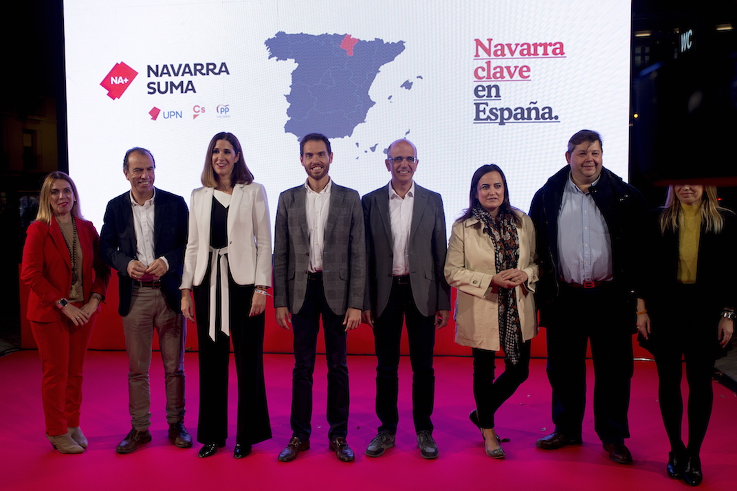 Navarra Suma ha sido la formación más madrugadora, adelantándose en seis horas al inicio oficial de esta campaña de formato reducido. Su candidato al Congreso, Sergio Sayas (UPN), ha destacado que esta nueva convocatoria a las urnas es «una nueva oportunidad para dar la espalda al nacionalismo y al PSOE que les apoya». Ha defendido que «Navarra sea clave en España y no un problema para España» y ha proclamado que «si gana Navarra Suma, pierde el nacionalismo y gana Navarra».