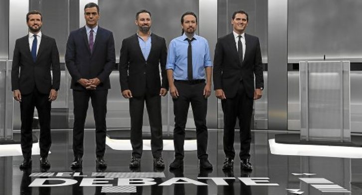 El debate ha repetido casi todos los aspectos de abril pasado, aunque esta vez, además de Pedro Sánchez (PSOE), Pablo Casado (PP), Albert Rivera (Cs) y Pablo Iglesias (Unidas Podemos), estuvo la novedad de Santiago Abascal (Vox), un hasta hace poco ignoto y periférico dirigente del PP vasco, que ha logrado batir un récord: por primera vez desde la muerte del dictador Franco, un político puede exponer en prime time un discurso de extrema derecha.